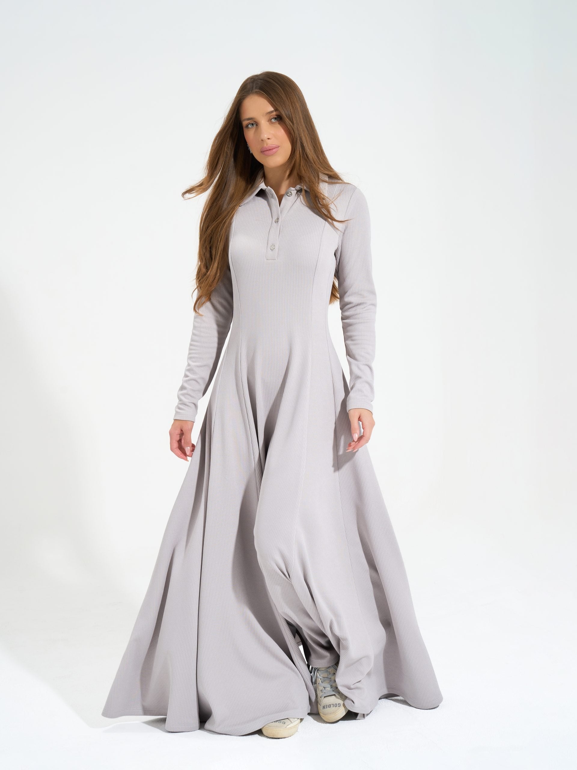Diana Dress Long sleeves maxi dress with a drop-waist featured with cloush style and back lacing for tightening the waist